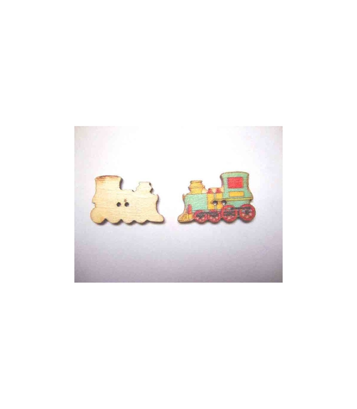 Houten knoop van een aqua locomotief in verschillende kleuren