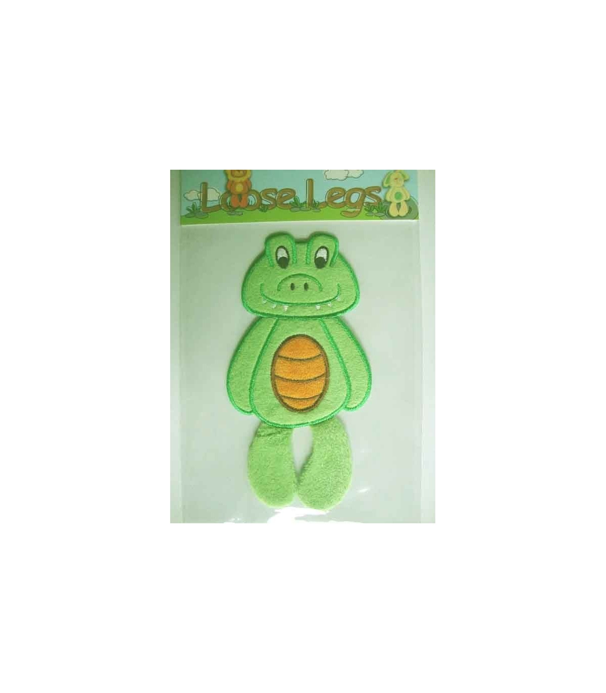Loose legs krokodil. Een opstrijkbare velours applicatie waarbij de pootjes los blijven hangen aangezien daar geen plaklaag achter zit.