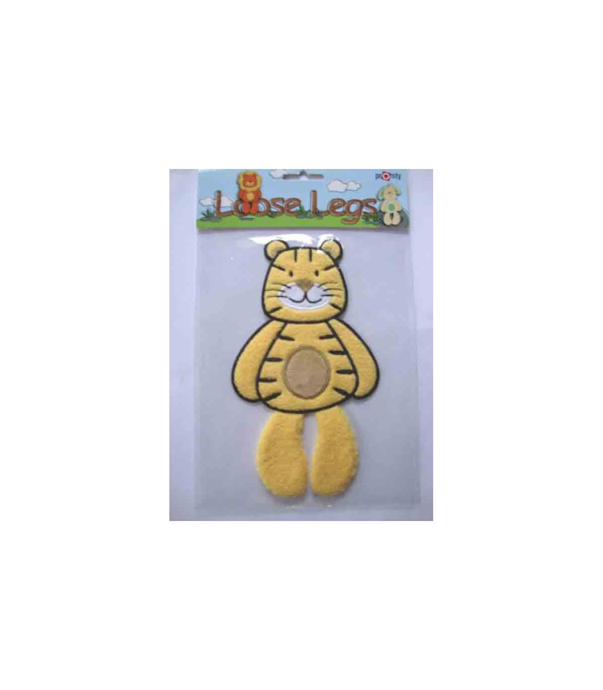 Loose legs tijger. Een opstrijkbare velours applicatie waarbij de pootjes los blijven hangen aangezien daar geen plaklaag achter zit.