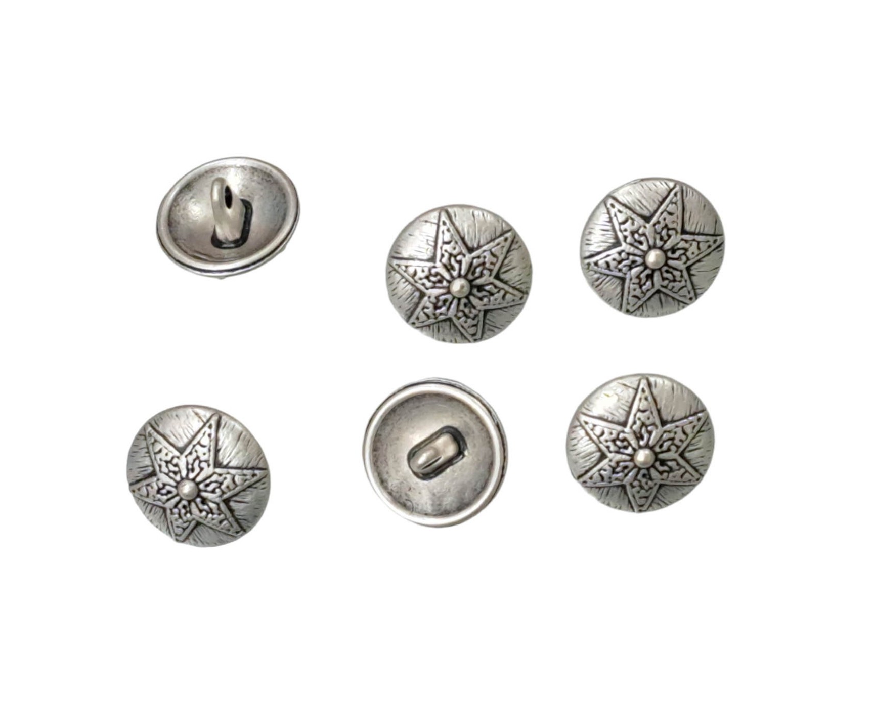 Metalen knoop op een steeltje met 6 puntige ster.