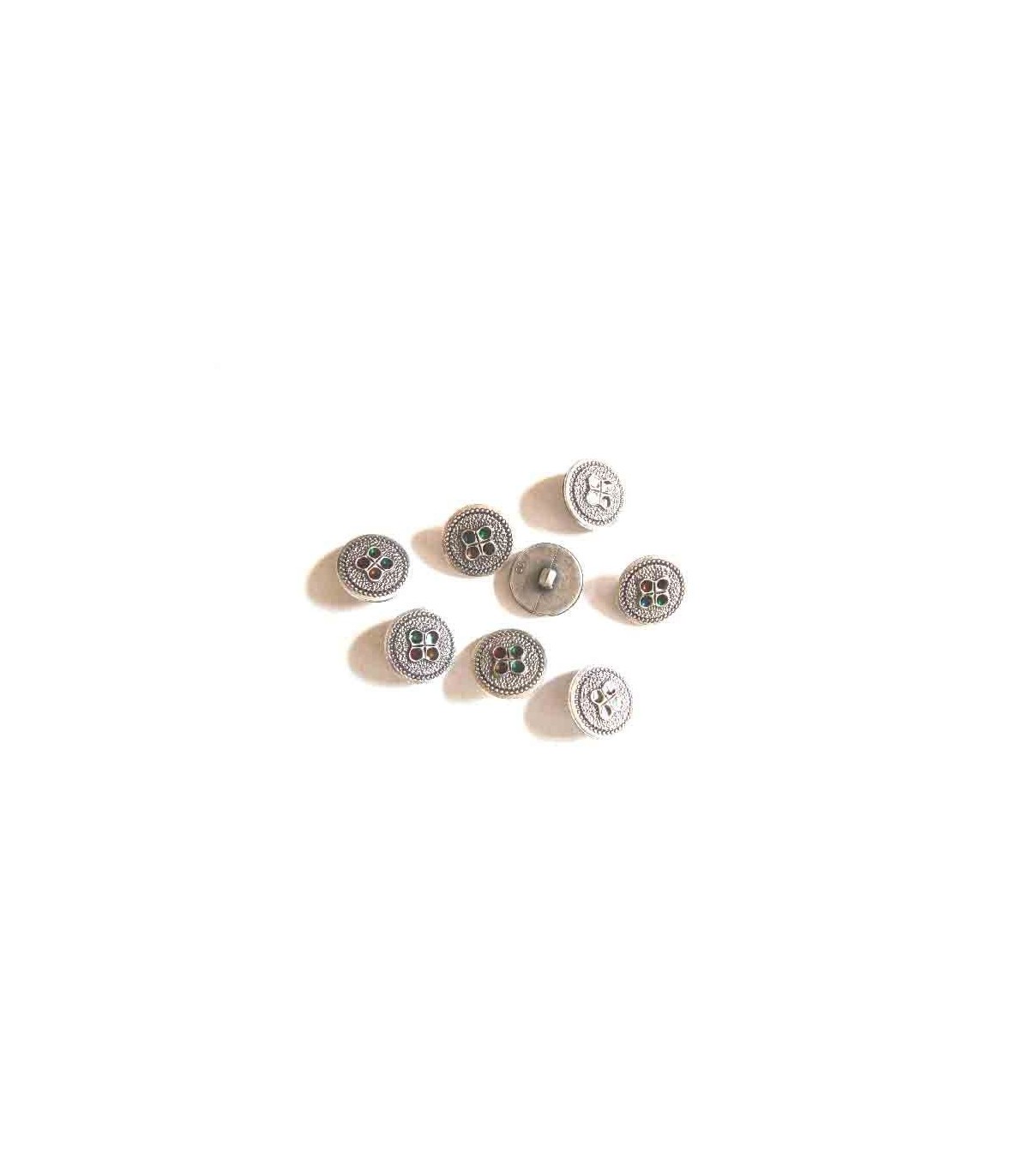 Metal look knoop Zilver met bloem 15 mm.