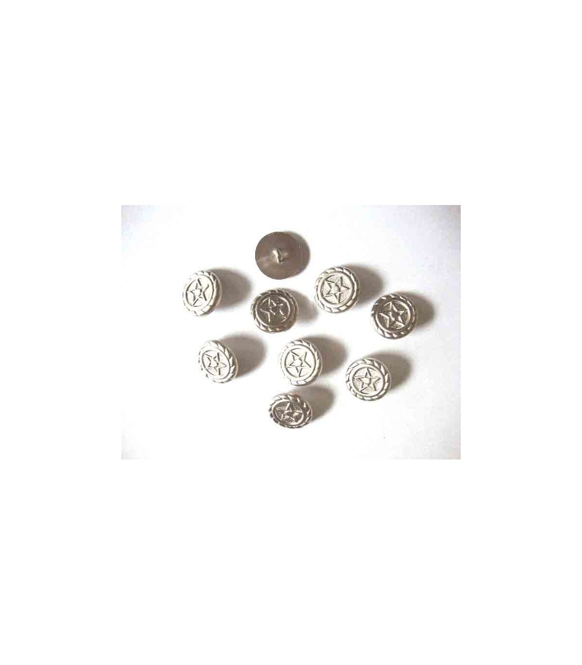 Metal look knoop Zilver met ster 15 mm.