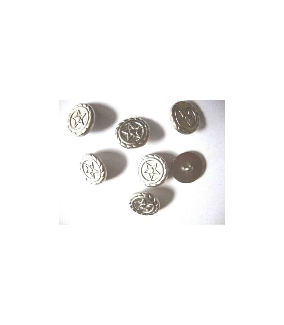 Een kunststof metal look knoop met een doorsnee van 22 mm.