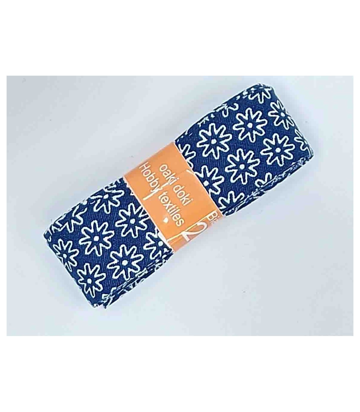 Biaisband in bundels van 2 meter Marine met witte minifleur 4003H