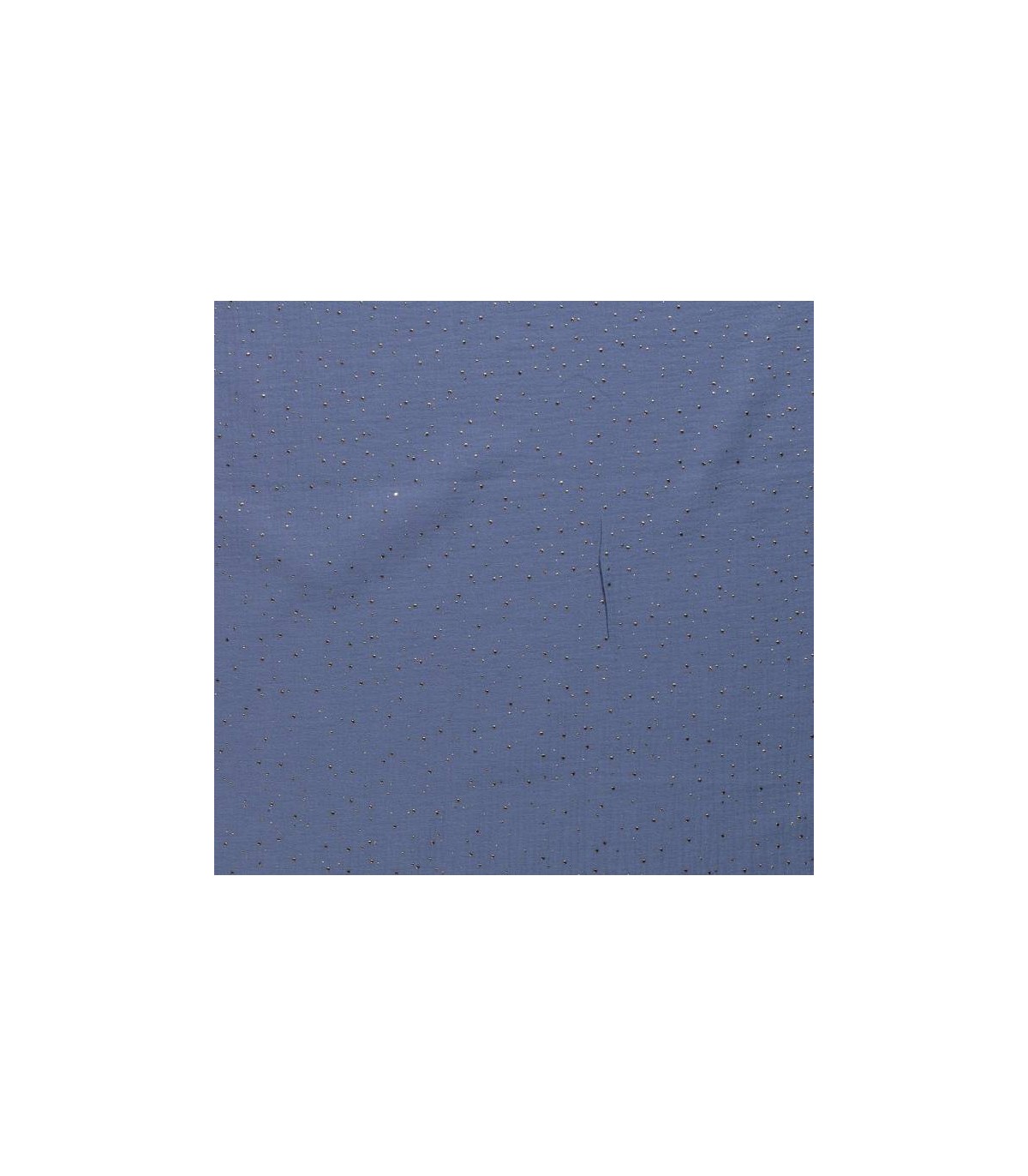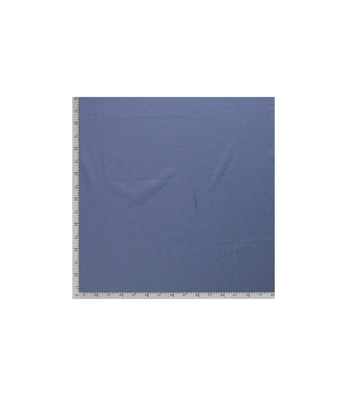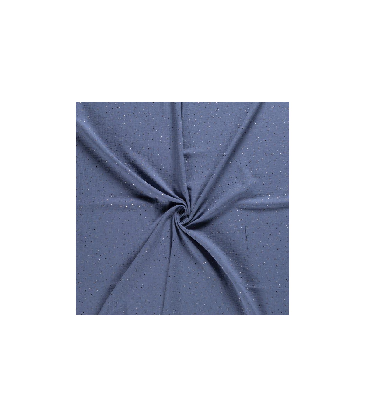 Een heerlijk zachte babykatoen, jeansblauw met goud glitters, die er na het wassen goed op blijven zitten en heeft een kleine wafel structuur.