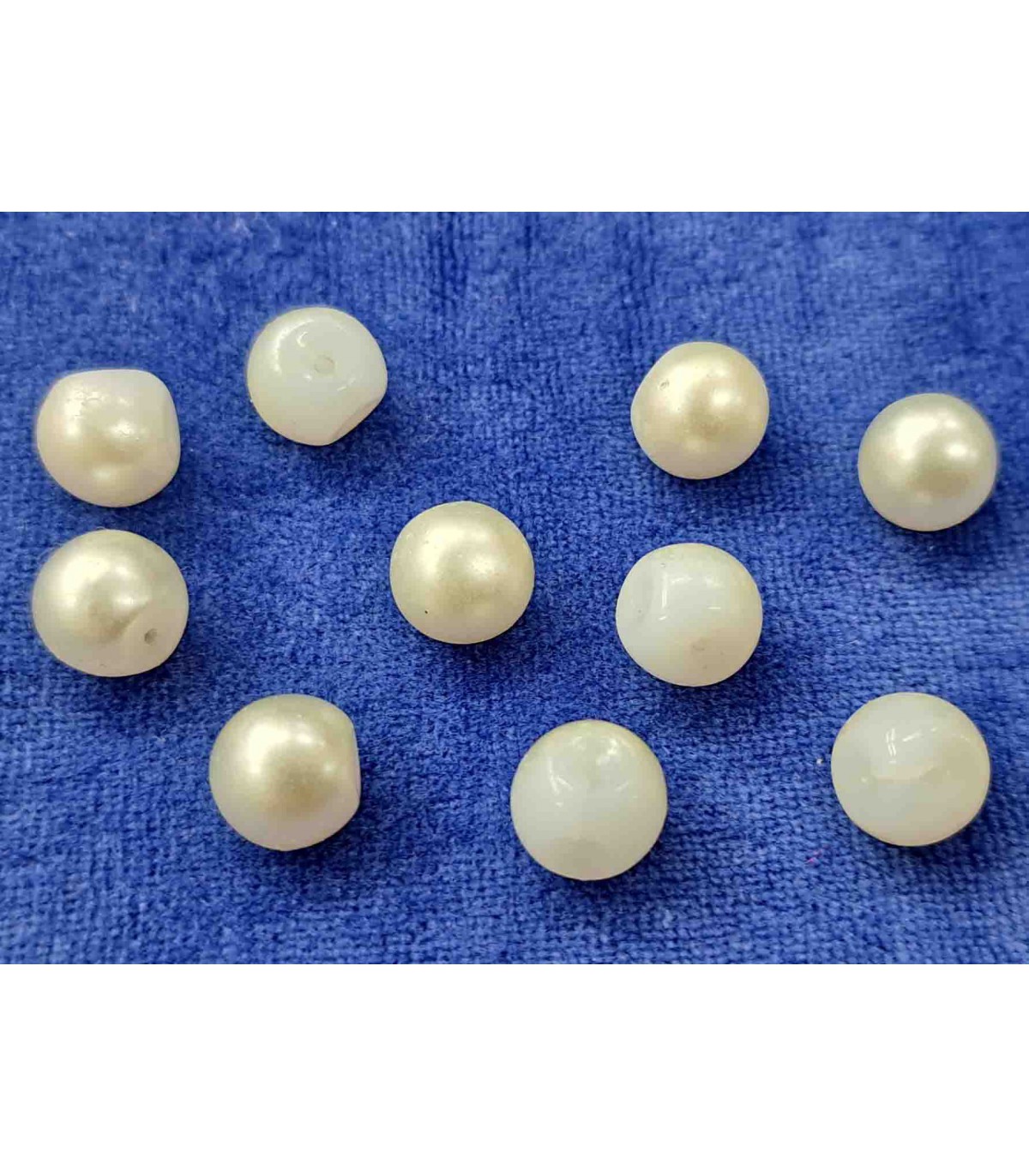 Een ronde kunststof parelknoop met een doorsnee van ongeveer 8 mm.
