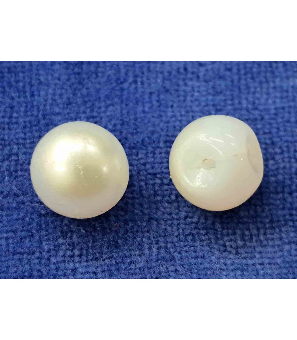 Aan de onderkant, rond het gaatje zit geen parelmoer.