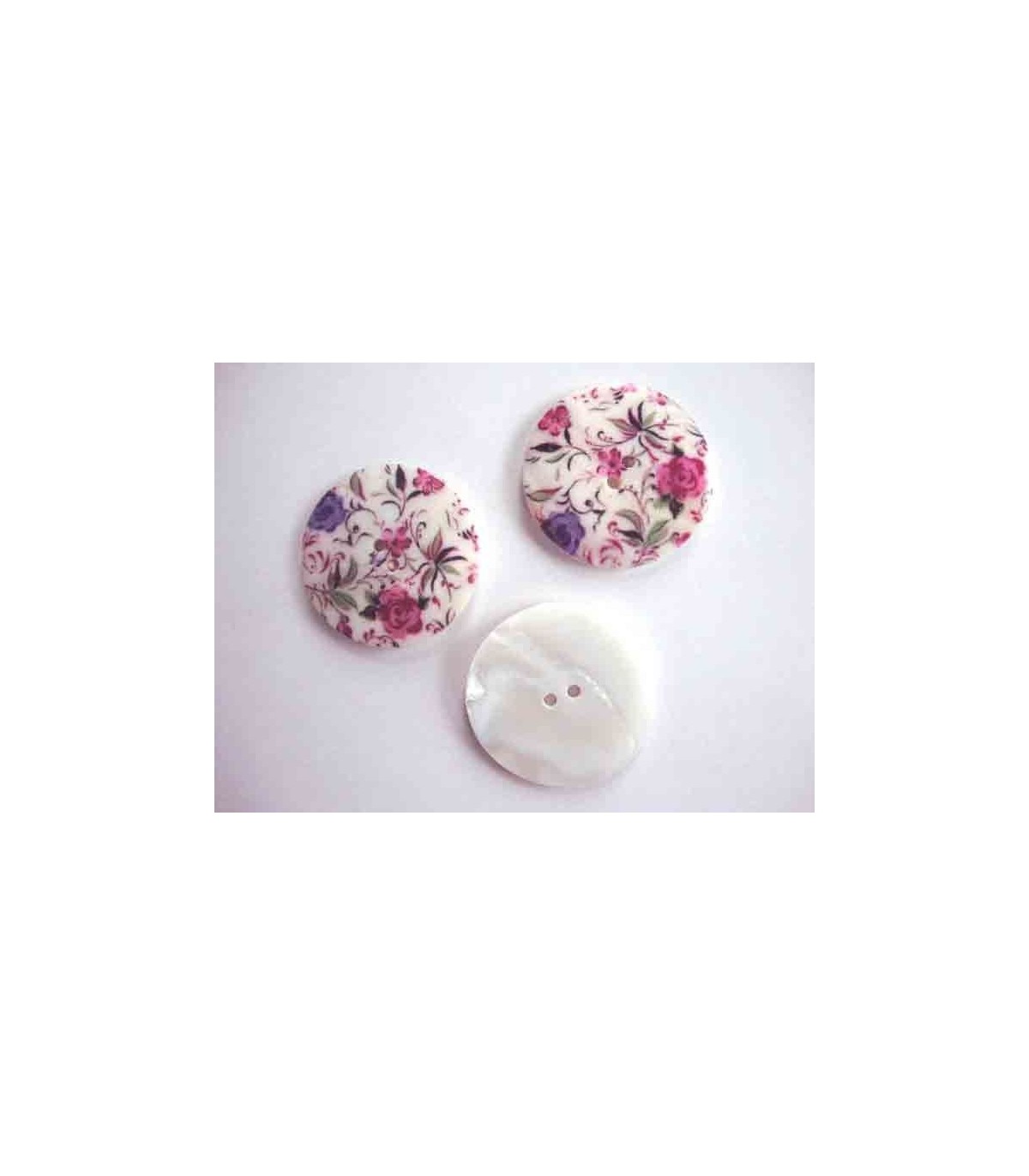 Een exclusieve ronde parelmoerknoop met een minifleur print.