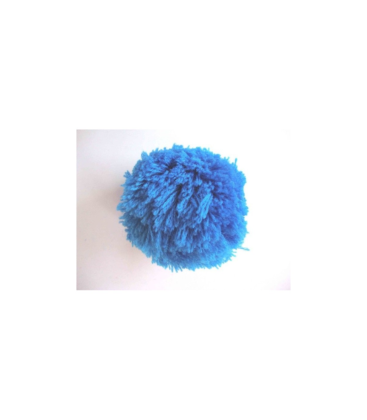 Een donkeraqua pom pom bolletje met een doorsnee van 7 cm.