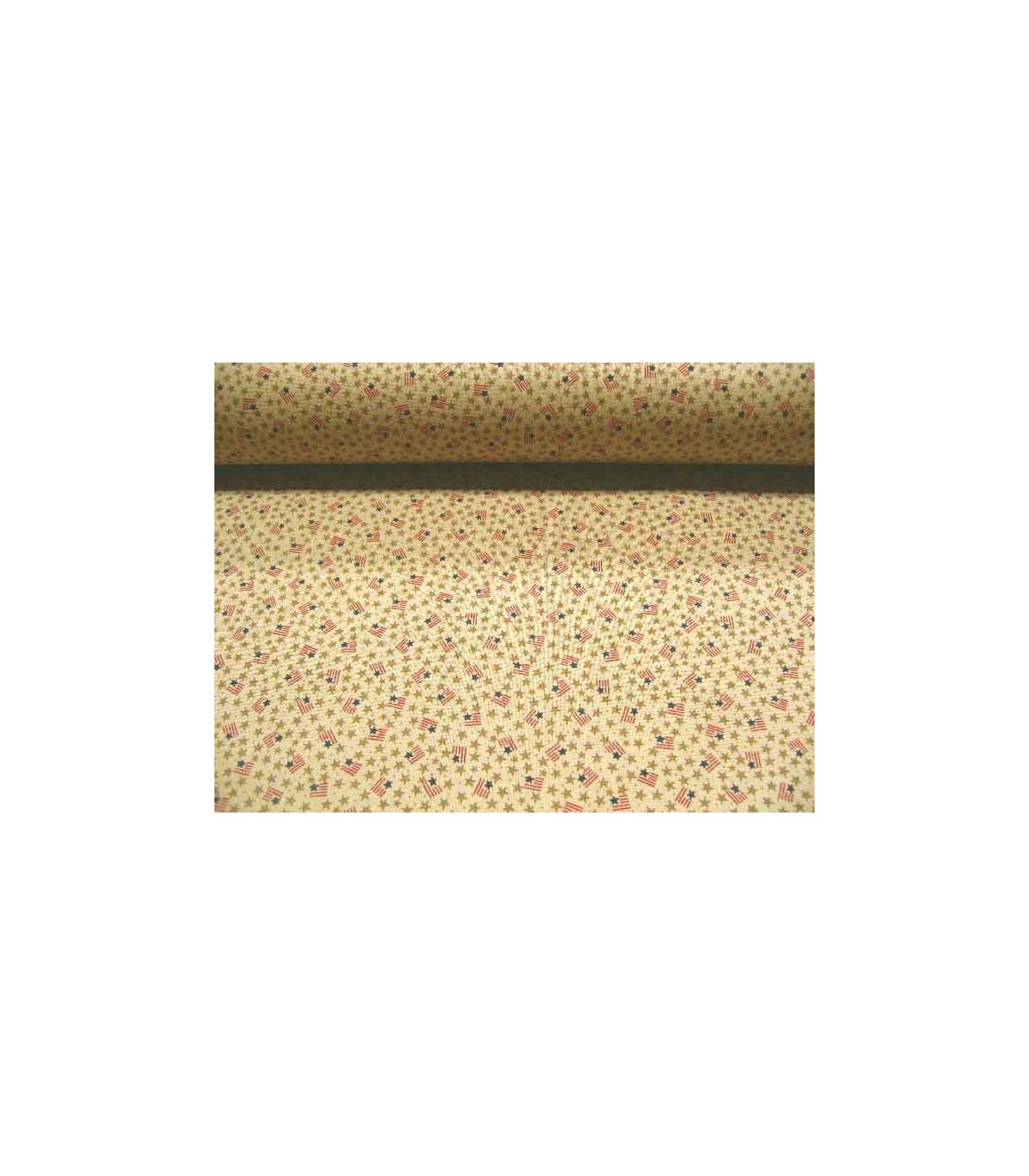 Cremekleurige quiltstof met sterretjes en vlaggetjes.