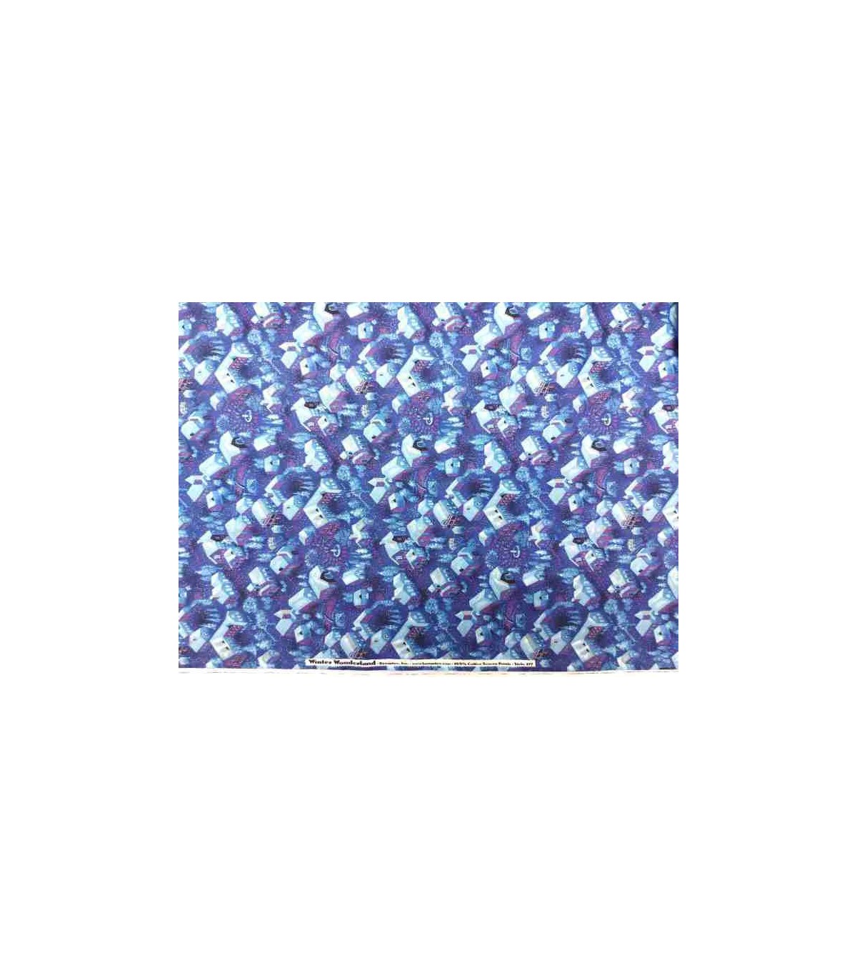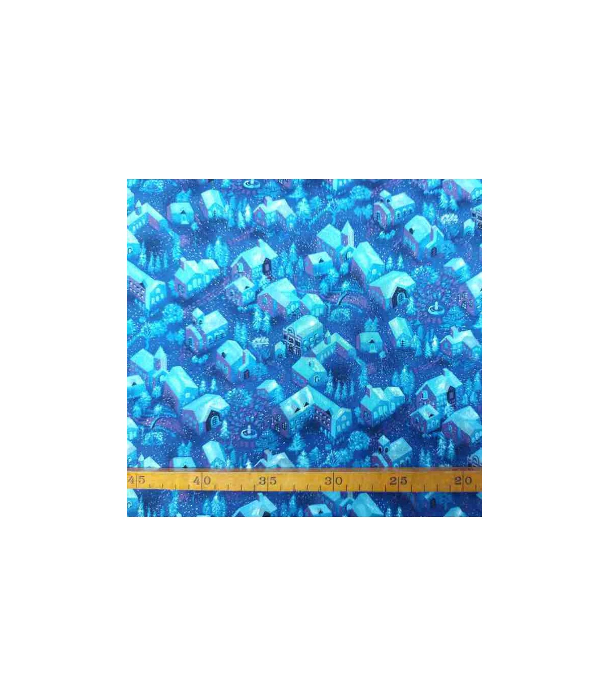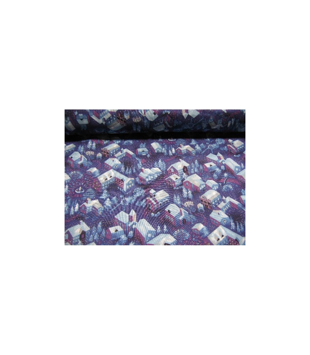 Paars/blauwe quilt katoen met gouden glitters en een dorpsprint.