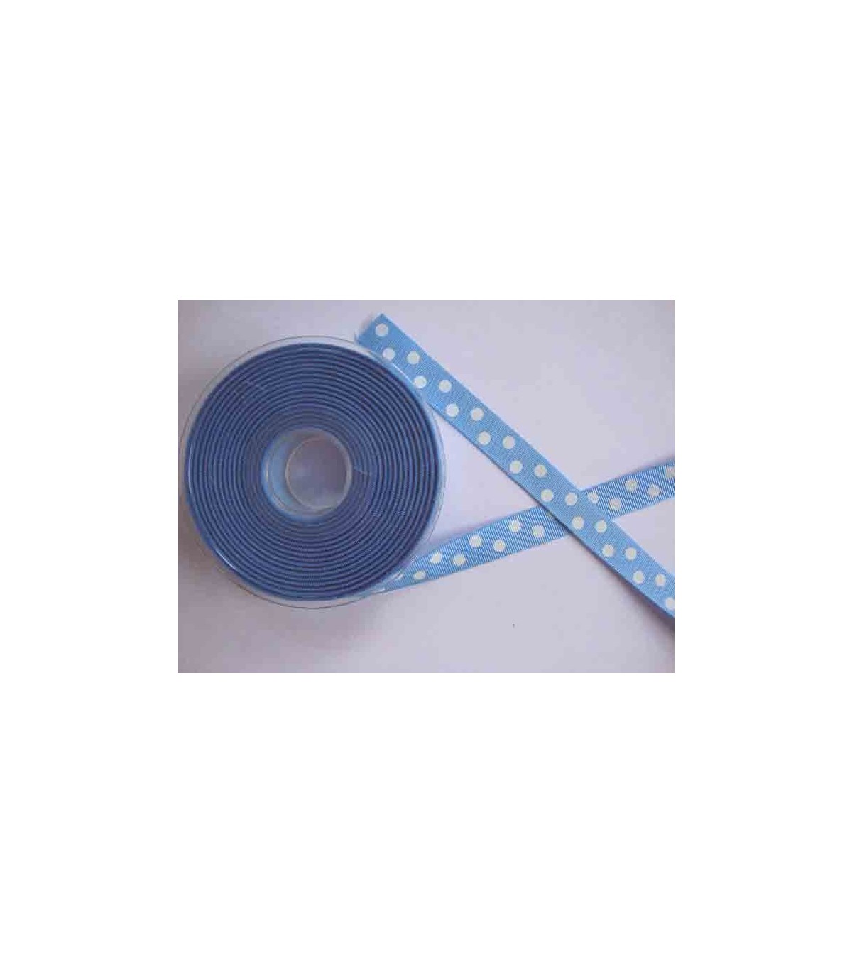 Lichtblauw ribsband met een witte stip en 16 mm. breed.