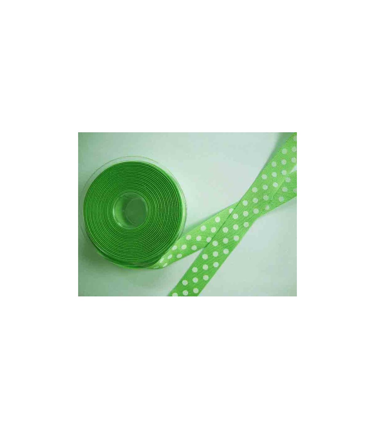 Limekleurig ripsband met een witte stip en 25 mm. breed.