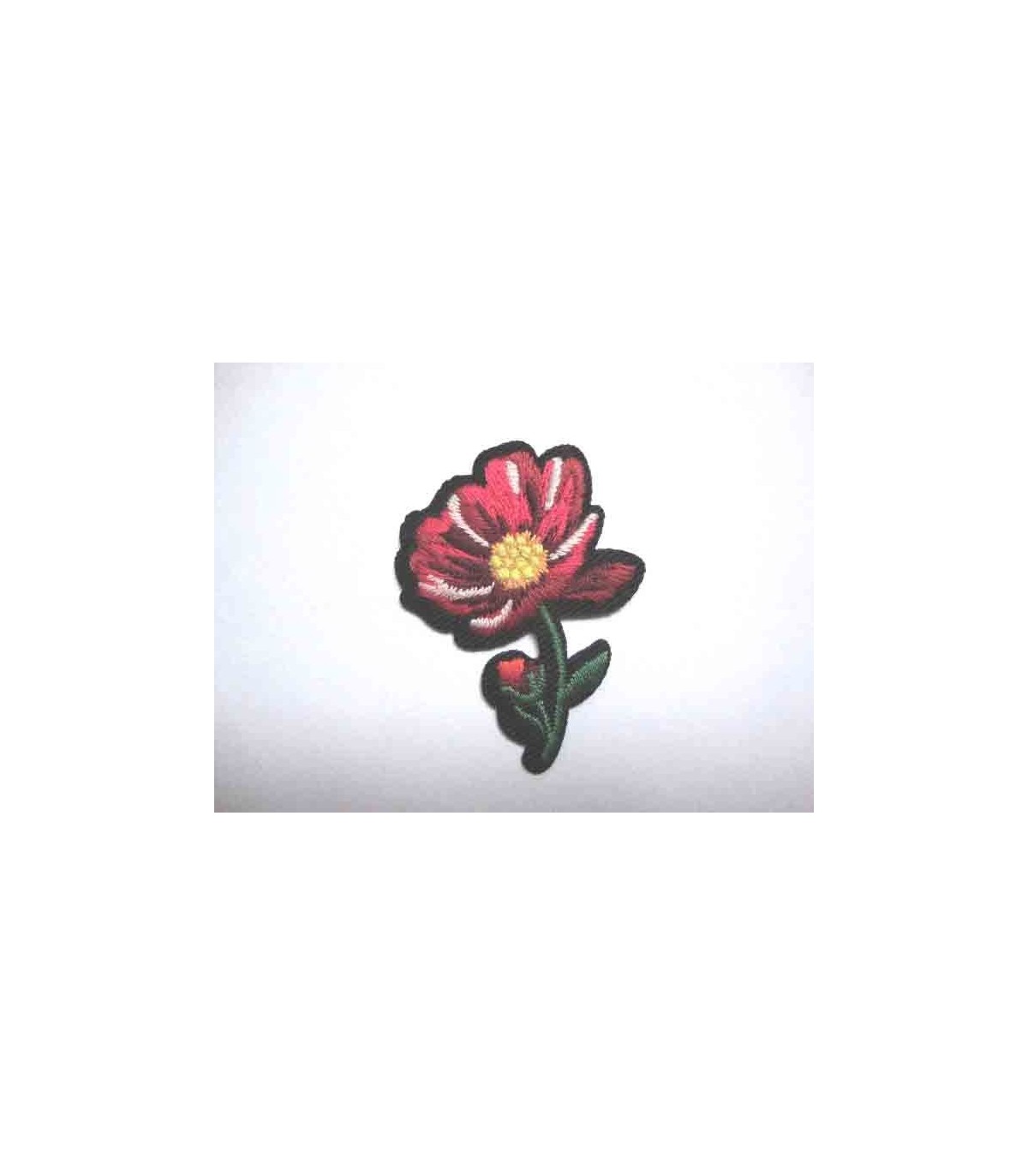 Kleine rode roos applicatie met knopje van 3 x 3.5 cm