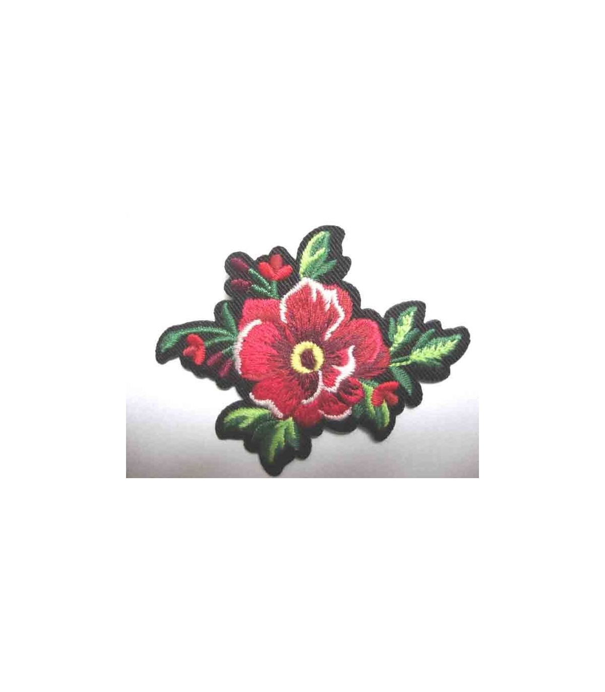 Grote rode roos met 3 kleintjes applicatie van 7 x 5 cm