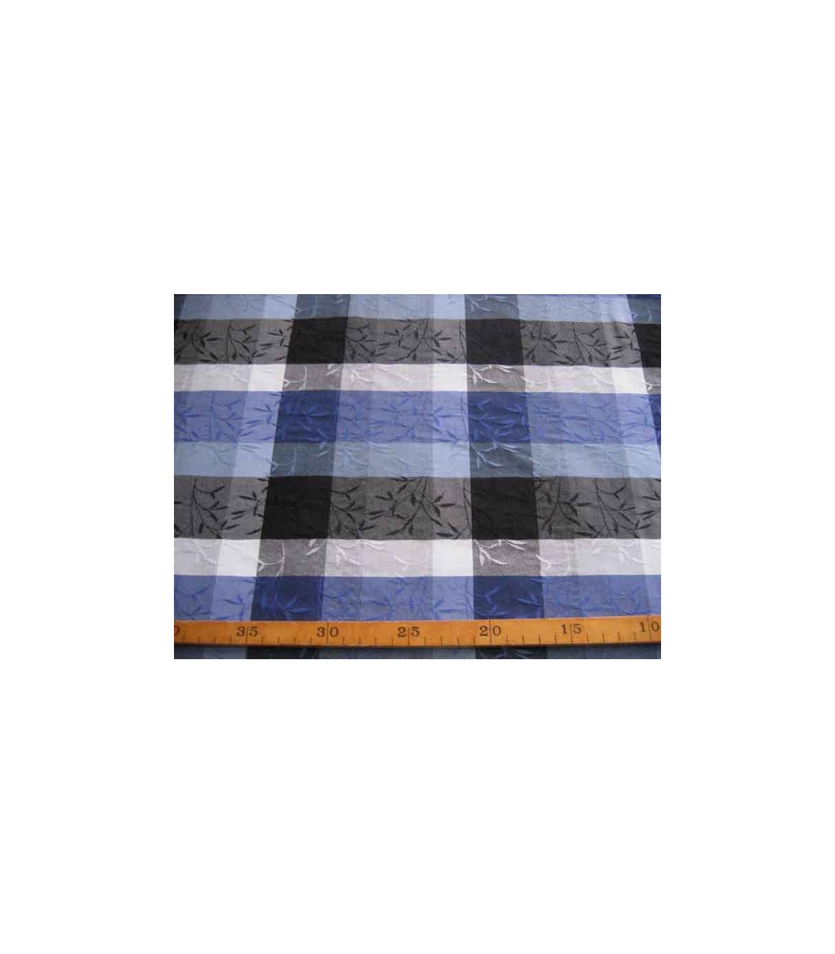 Een kobalt, zwart, wit, grijze ruit met een ingeweven takje. Leuk voor rok of jasje.