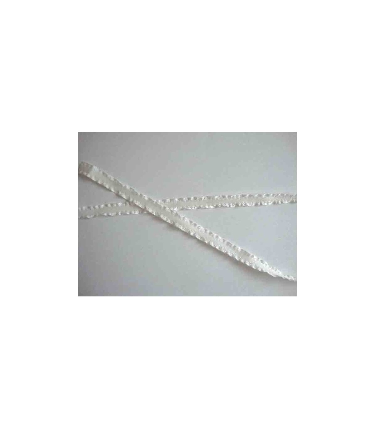 Een offwhite satijnbandje met aan beide zijden een ruche