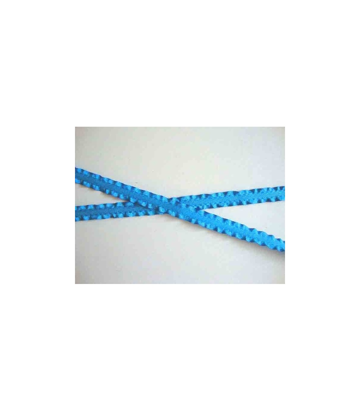 Een aquakleurig satijnbandje met aan beide zijden een ruche