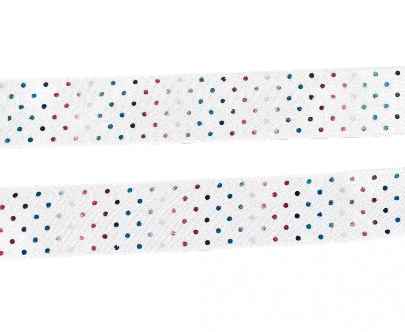 Satijnband wit met multi-color stipjes