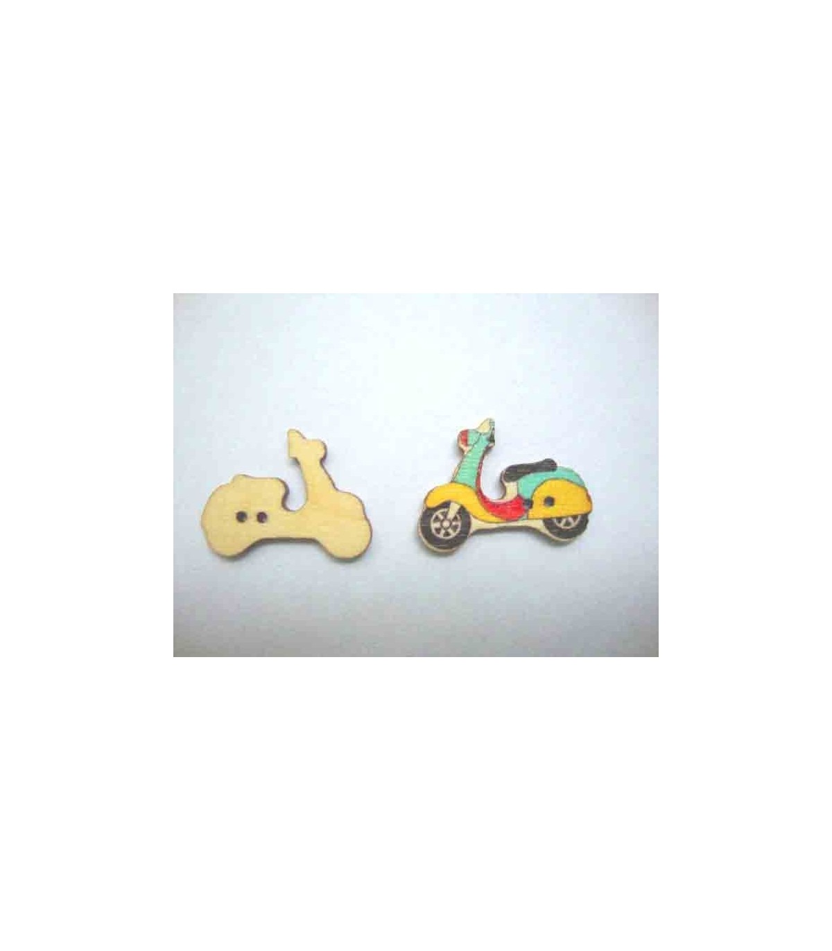 Houten knoop van een gele scooter en andere kleuren