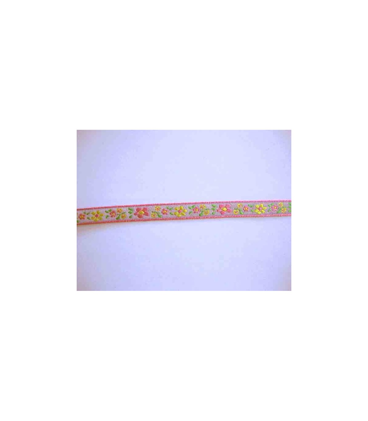 Sierband Bloem Lichtgrijs met een roze/gele bloem 10mm