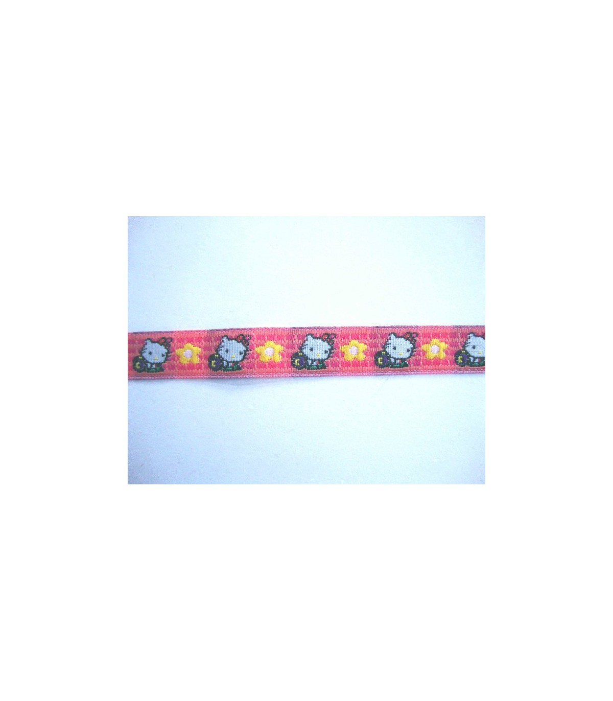 Hardpink/pinkkleurig sierband met poezen en bloemen