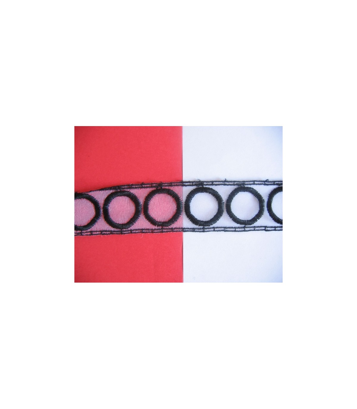 Doorschijnend sierband met zwarte cirkels.