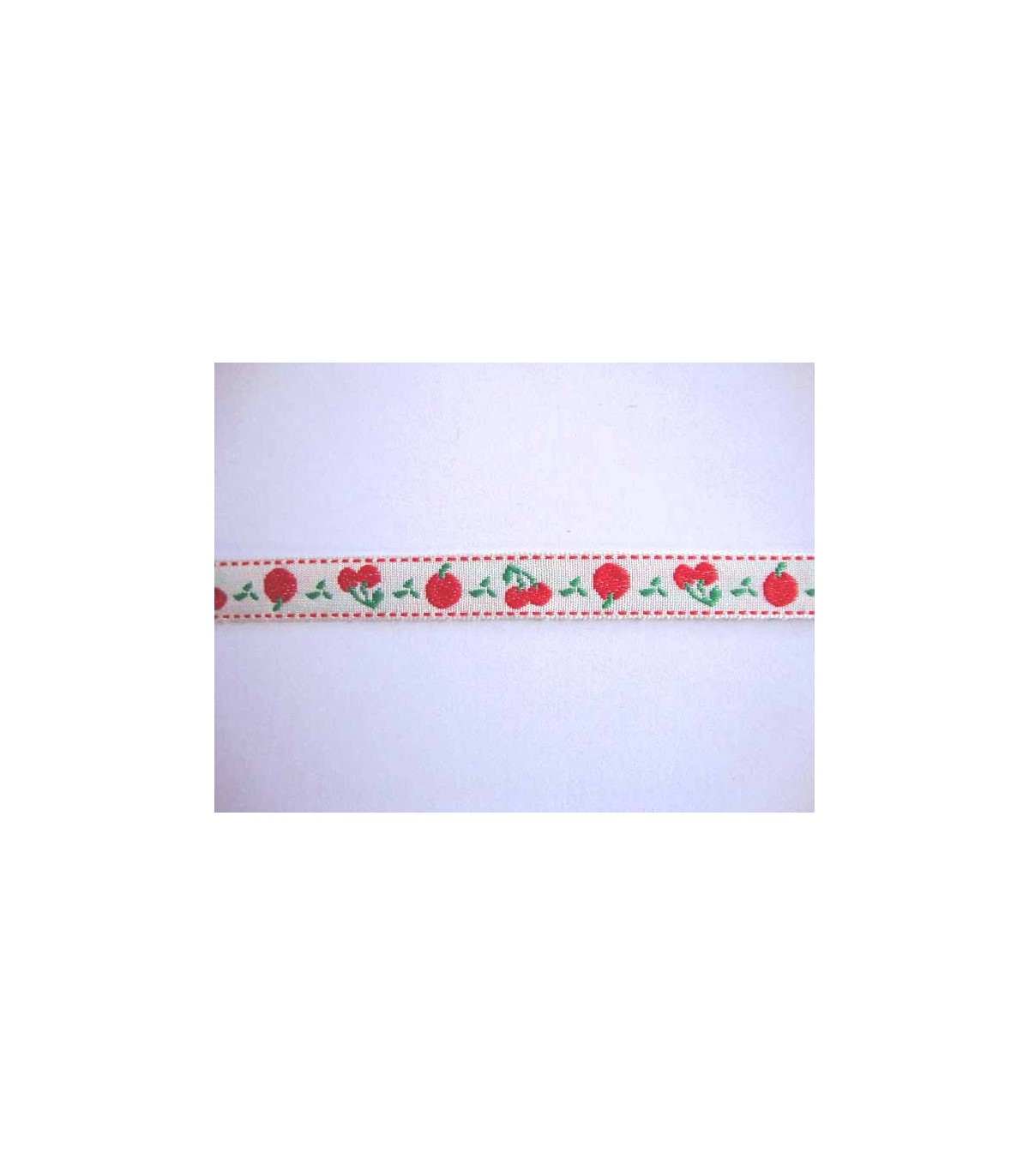 Een offwhite sierbandje met rode appel en kers.
