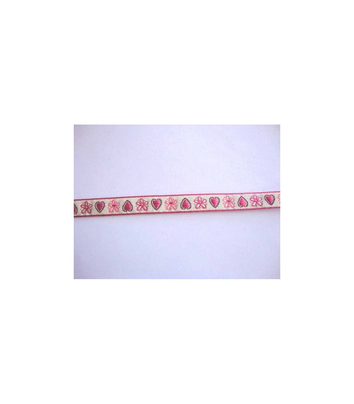 Sierband Hartjes Lichtzand met roze hartjes en bloem 10mm