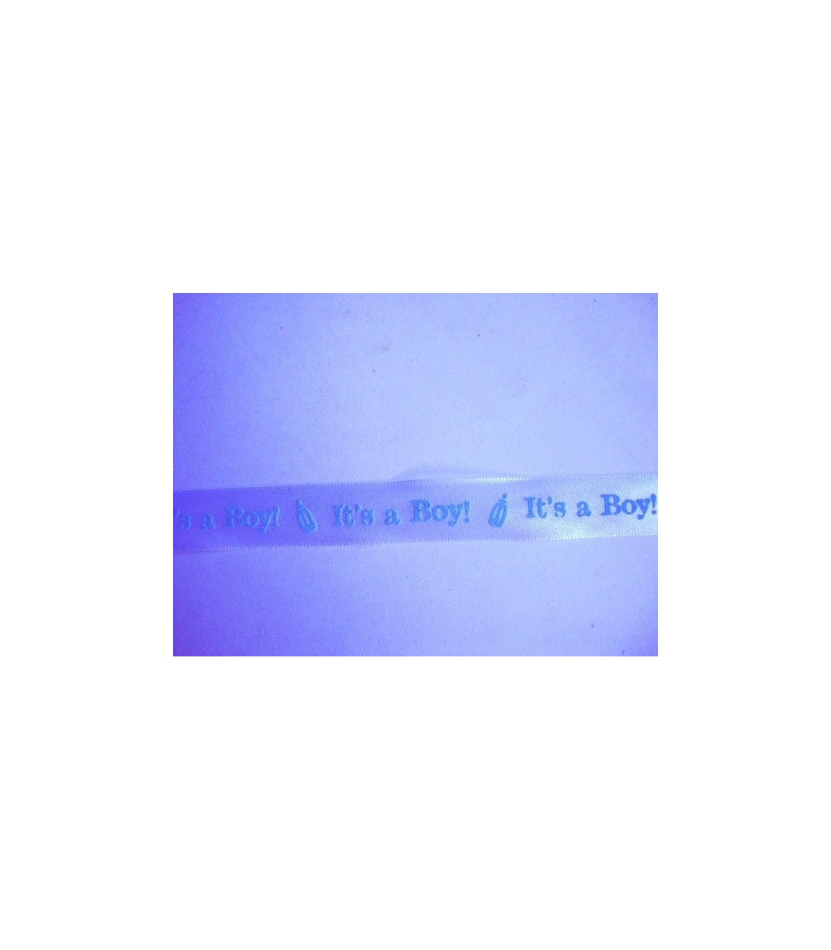 15 mm. breed wit sierband met de aqua tekst It's a Boy.