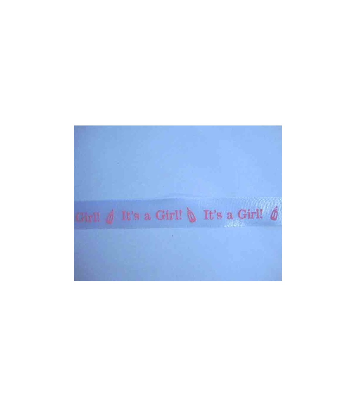 15 mm. breed wit sierband met de zalmroze tekst It's a Girl.