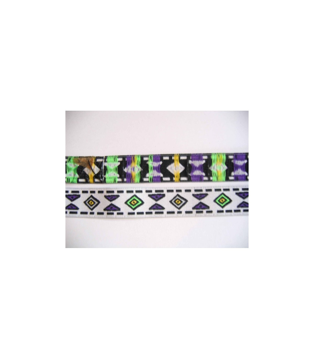 Sierband Wit met lime ruit en paarse driehoek O-843