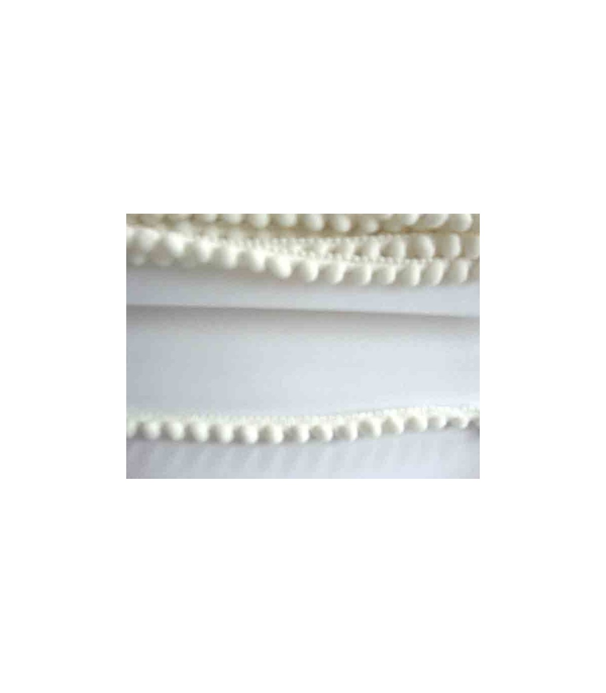 Smal pompom sierband Offwhite. De bolletjes hebben een doorsnee van zo'n 8 mm.