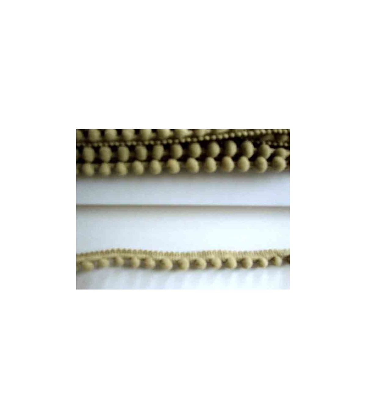 Smal pompom sierband Zand. De bolletjes hebben een doorsnee van zo'n 8 mm.