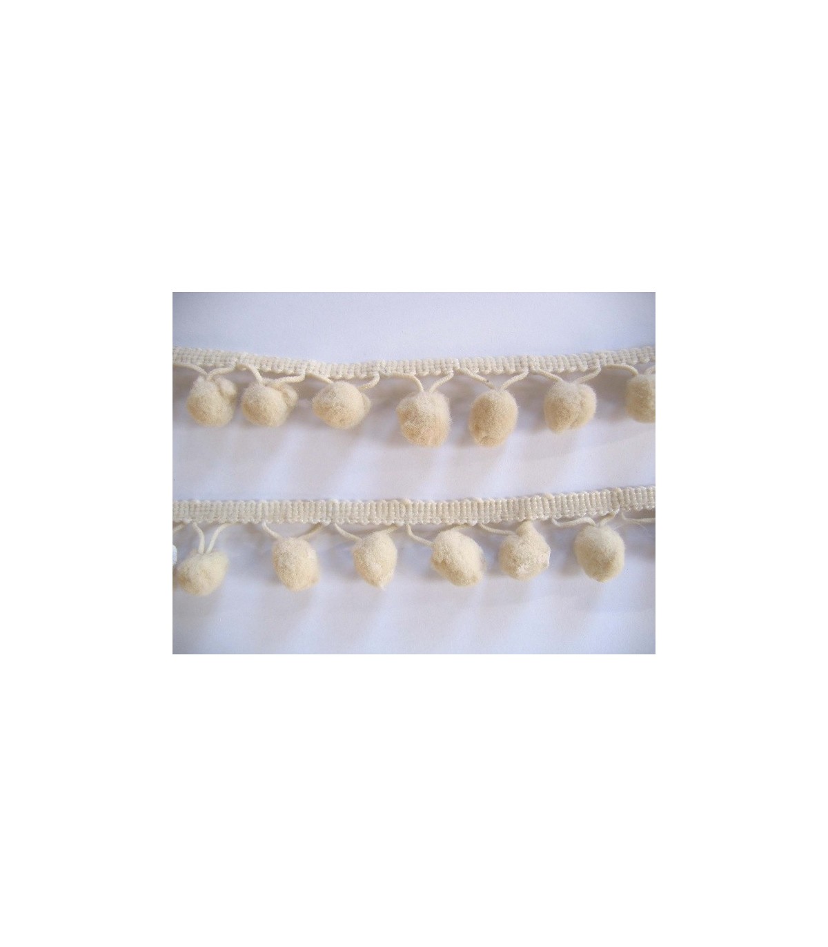 Creme kleurige sierband met bolletjes met een doorsnee van 10 mm.