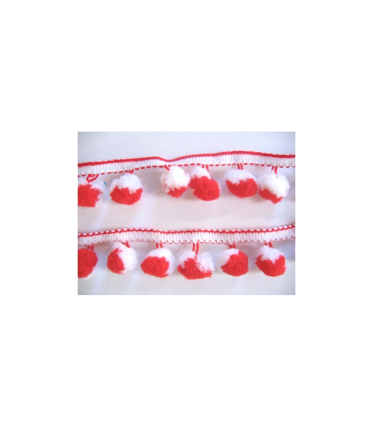 Sierband met pompom bolletjes Rood/wit
