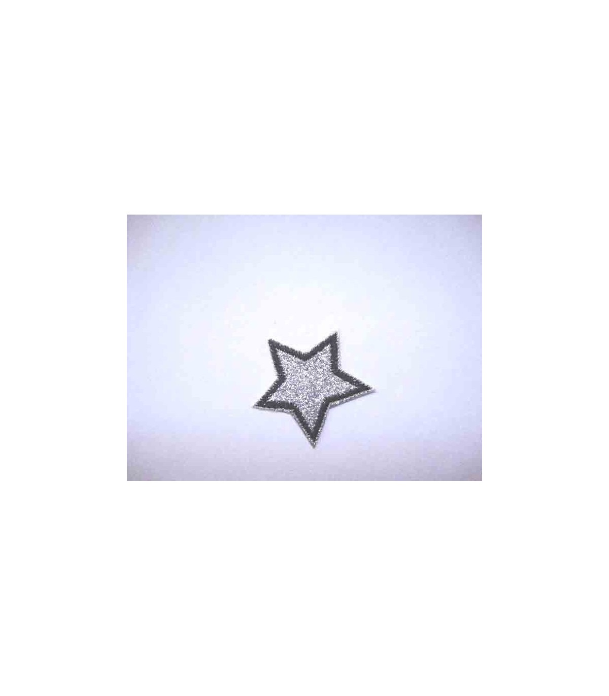 Een opstrijkbare glitter ster applicatie met een doorsnee van 3.5 cm.