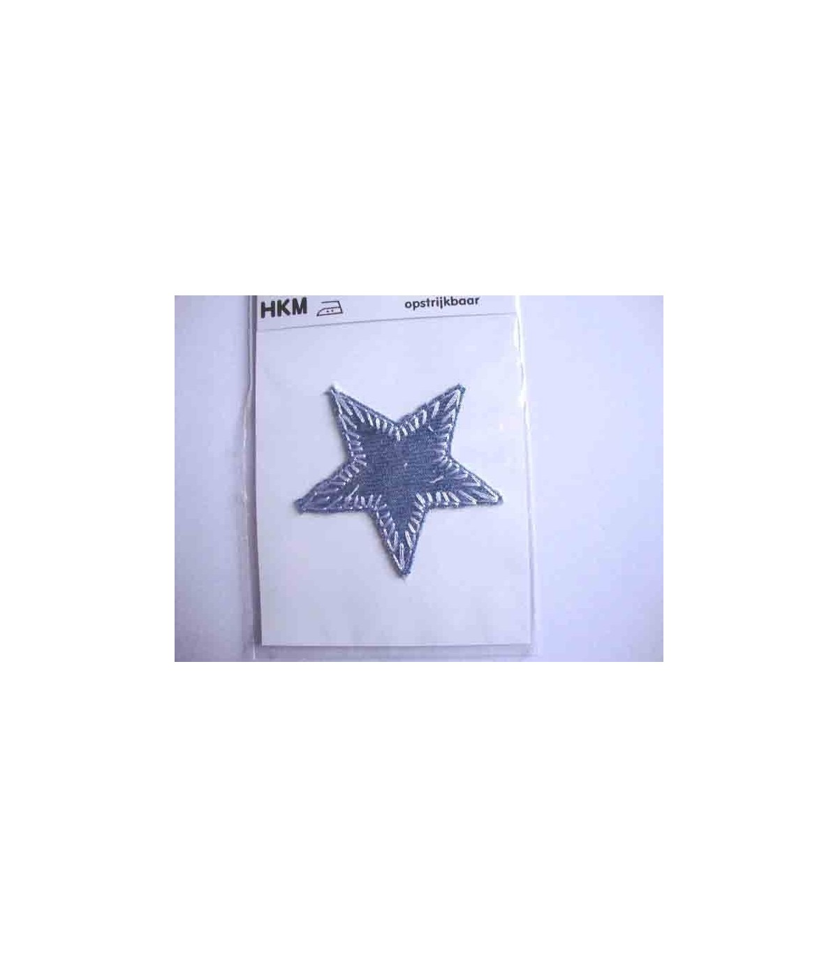 Een opstrijkbare jeans ster applicatie met een doorsnee van 5 cm.