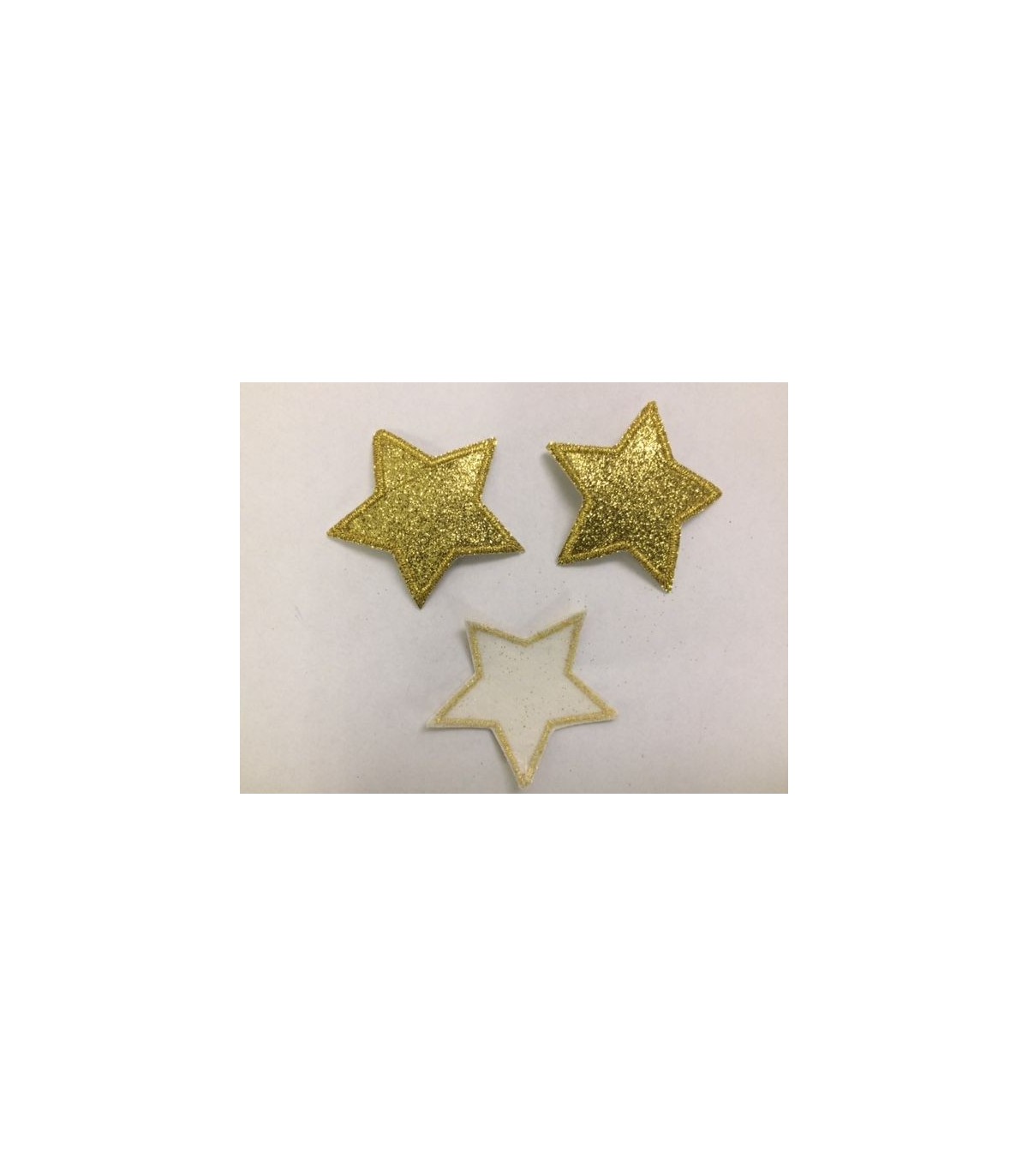 Een opstrijkbare glitter ster applicatie met een doorsnee van 5 cm.