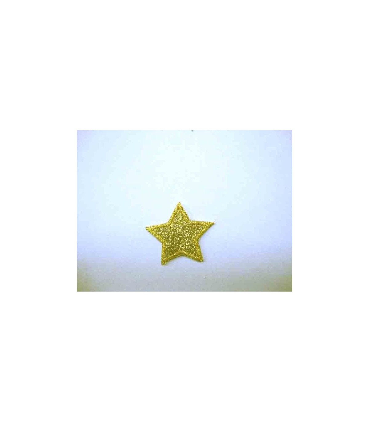 Een opstrijkbare glitter ster applicatie met een doorsnee van 2.5 cm.