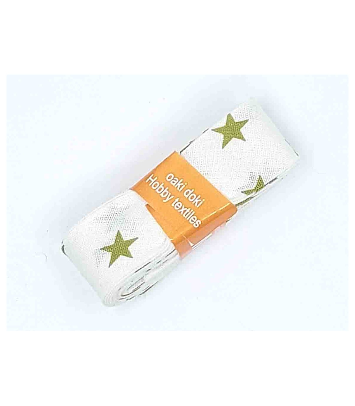 Biaisband bundel 2 mtr. Wit met licht legergroene ster 2022H