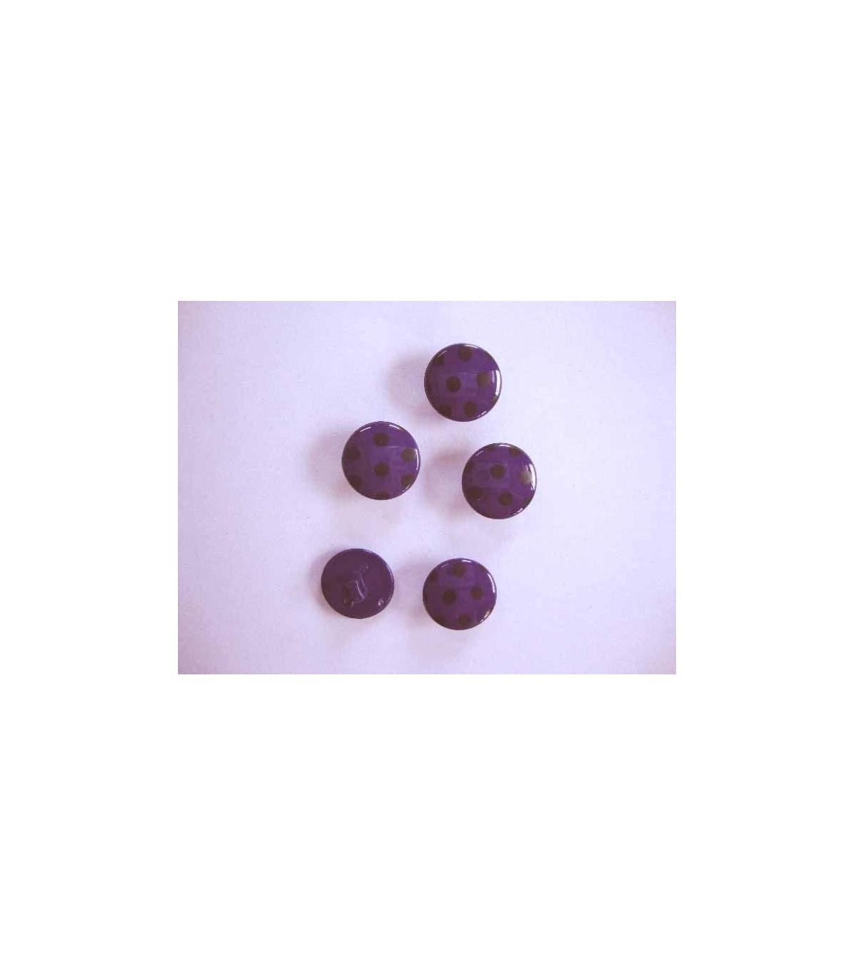 Paars kleurige kunststof knoop met een zwarte stip. Doorsnee van 15 mm.