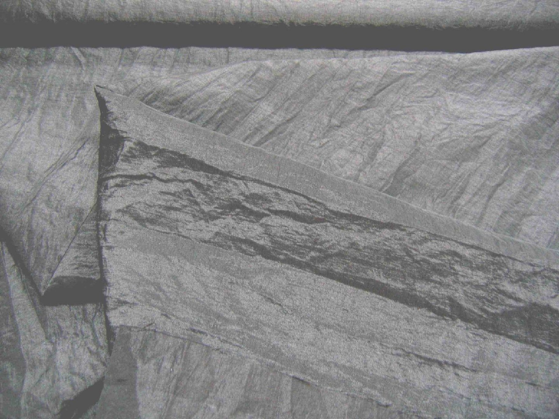 Grijze gewassen taftzijde. Ook leuk voor feestkleding.