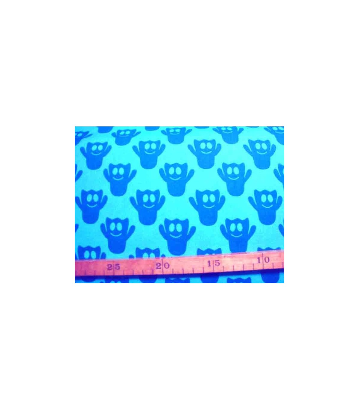 Een aqua kleurige katoen met petrol kleurige spookjes van 4 x 4 cm.
