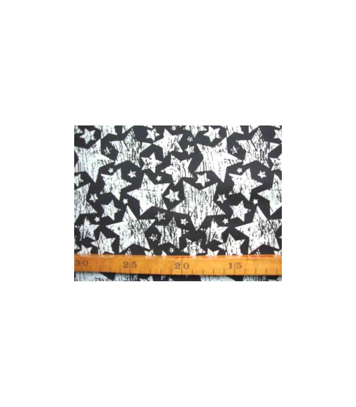 Een zwarte katoen met witte sterren met streepjes.