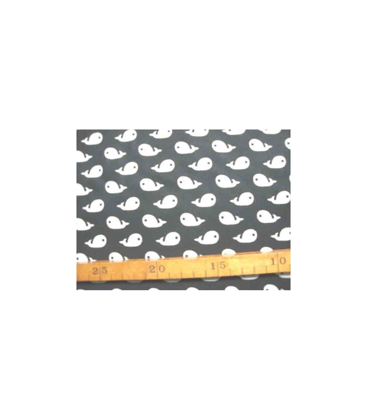 Een zwarte katoen met witte walvisjes van 2.5 x 1 cm.