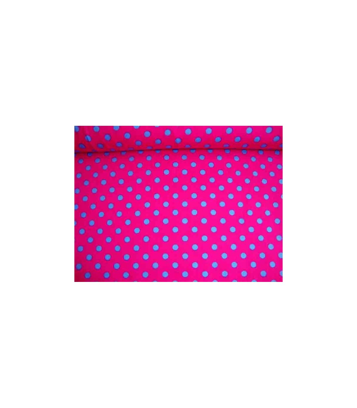 Een pink kleurige katoen met aqua kleurige stippen. De stip heeft een doorsnee van 7 mm.