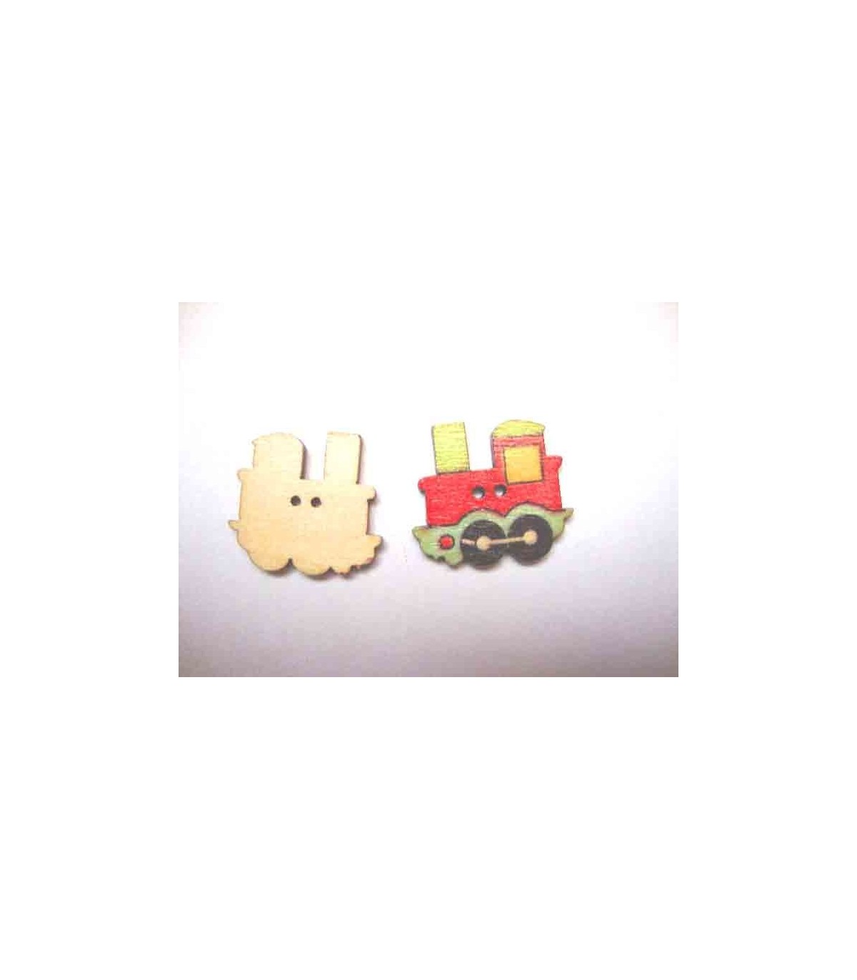 Houten knoop van een rood gekleurde trein en andere kleuren
