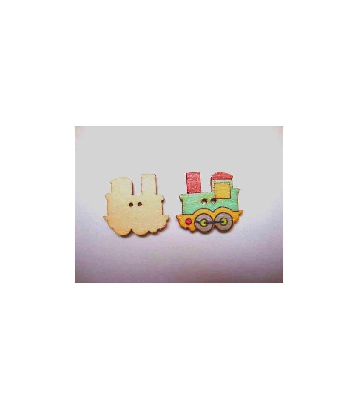 Houten knoop van een aqua gekleurde trein en andere kleuren