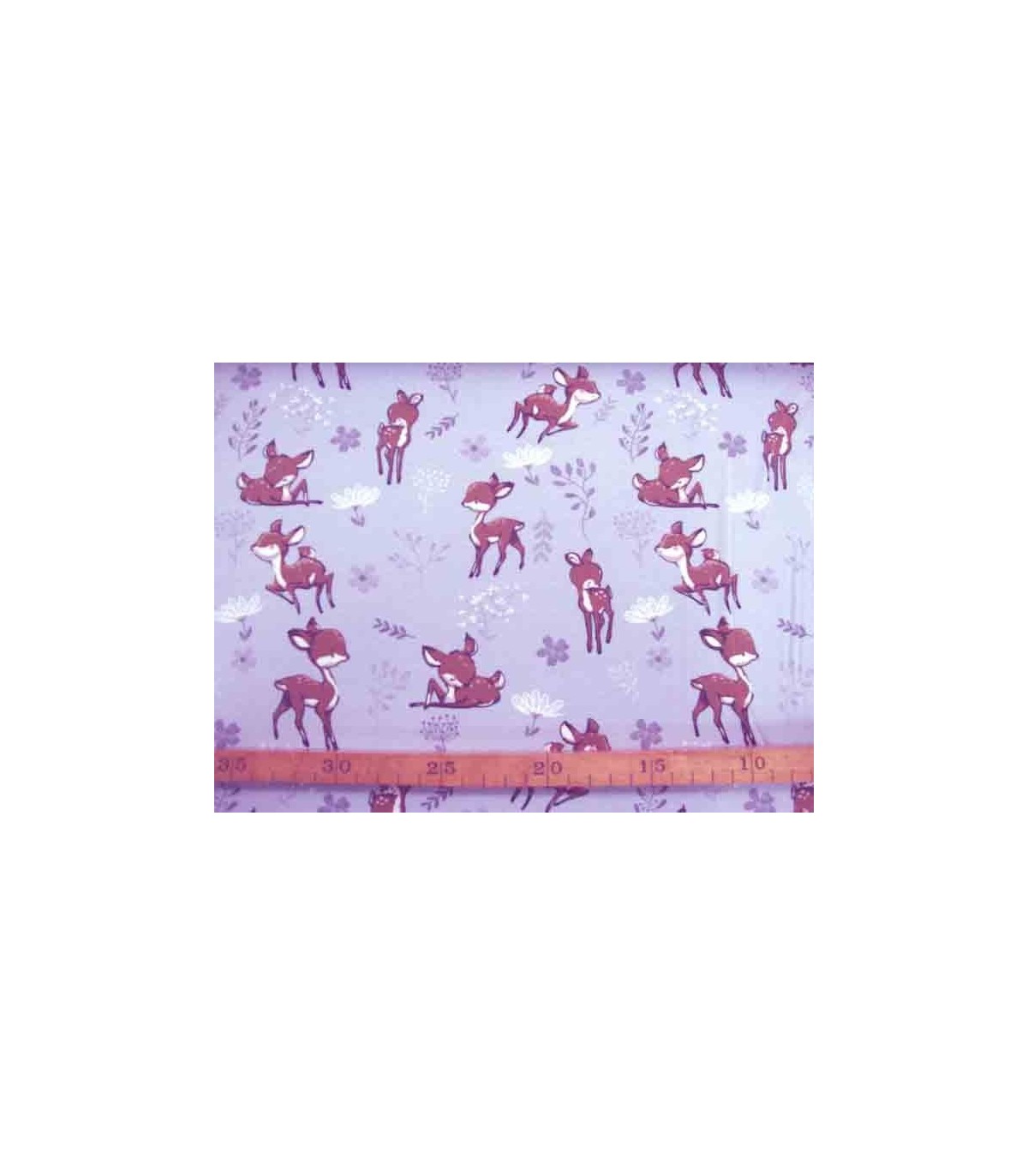 Een lichtgrijze tricot met hertjes Rekt in de breedte en in de lengte. Huidvriendelijk, milieuvriendelijk en kindvriendelijk geproduceerd.